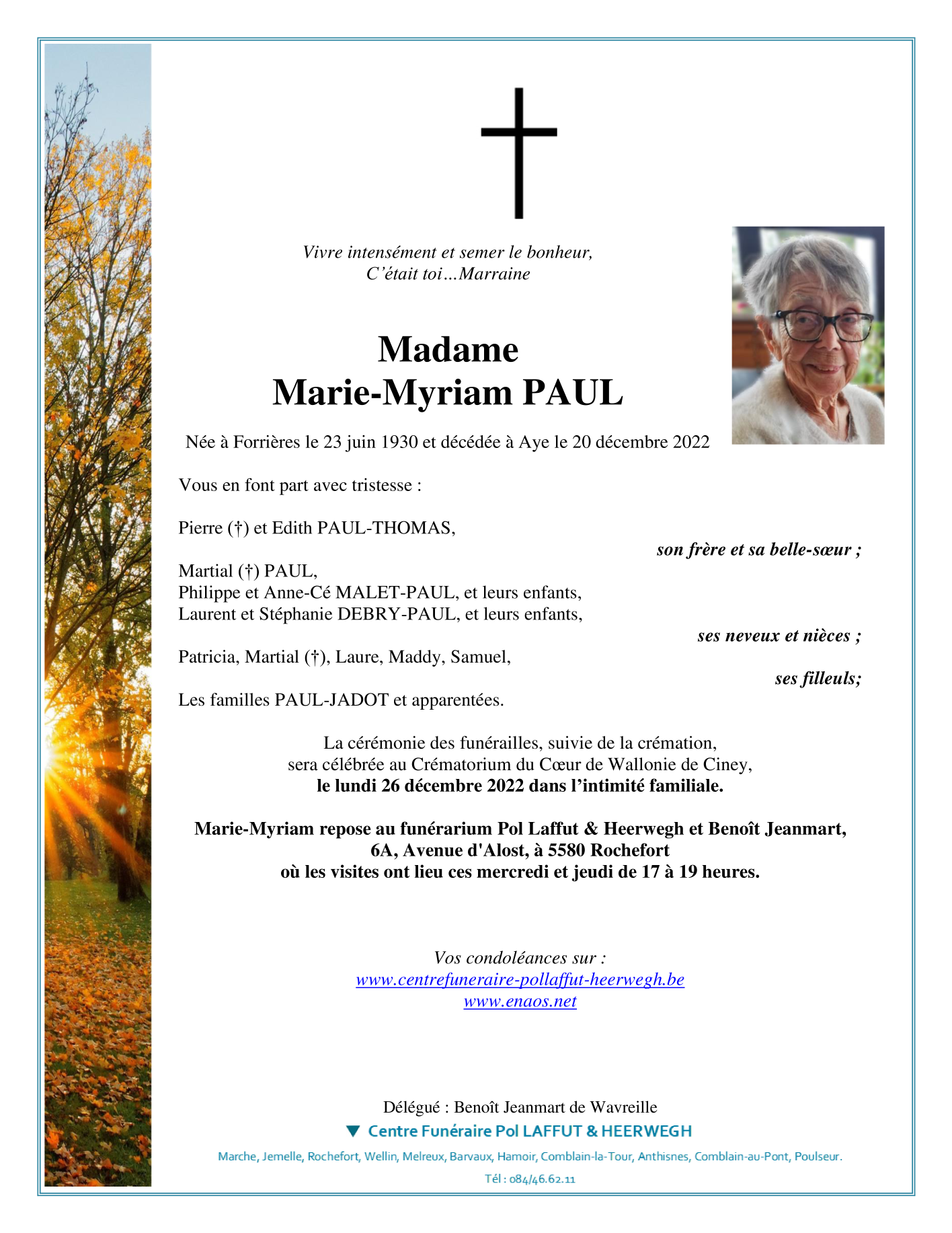 Overleden te Aye (6900) op dinsdag 20 december 2022 op 92-jarige leeftijd