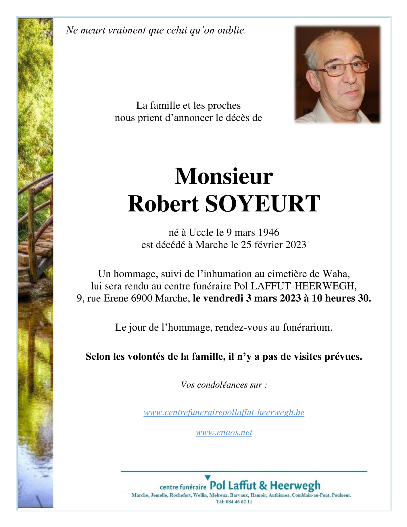 Overleden te Marche-en-Famenne (6900) op zaterdag 25 februari 2023 op 76-jarige leeftijd