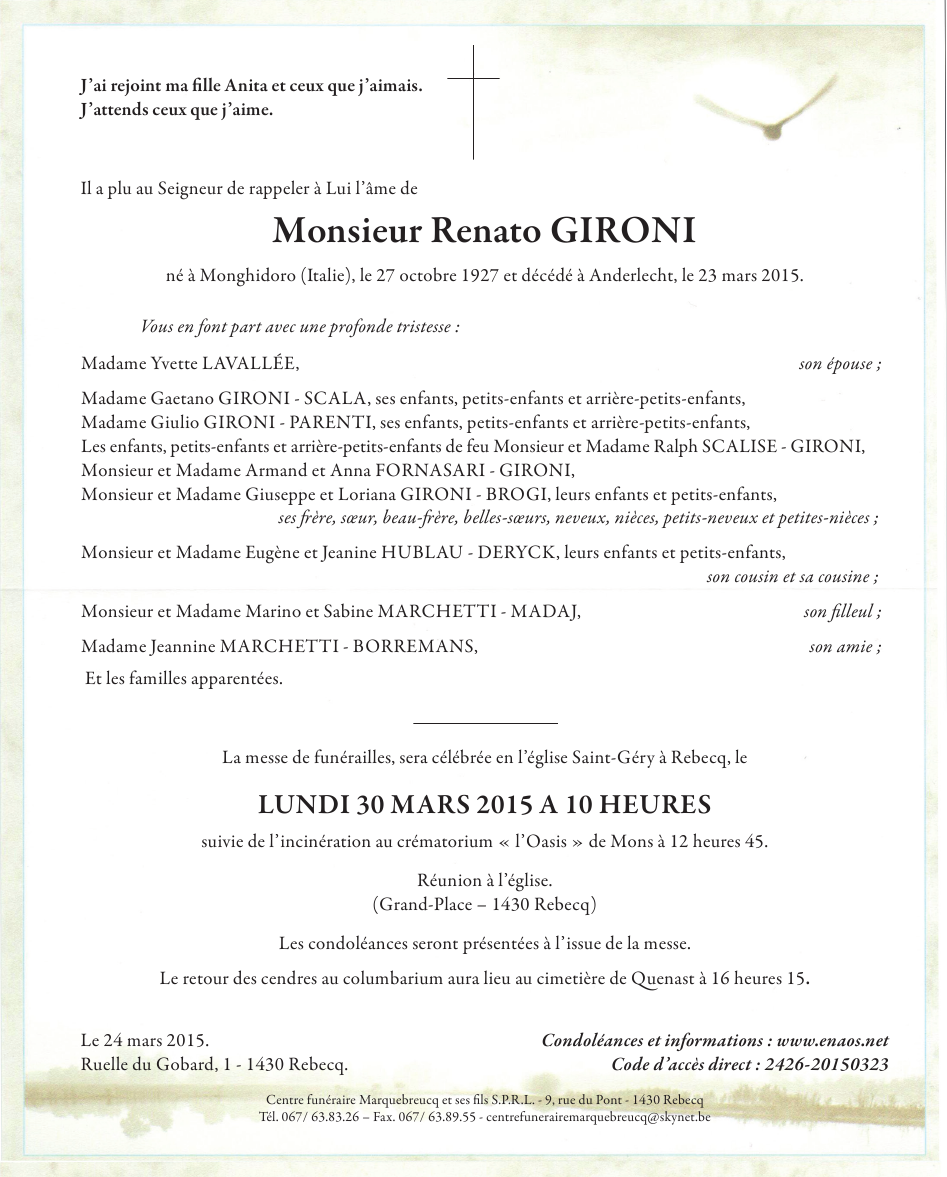 Died in Anderlecht (1070) on 23 March 2015 at the age of 87 years