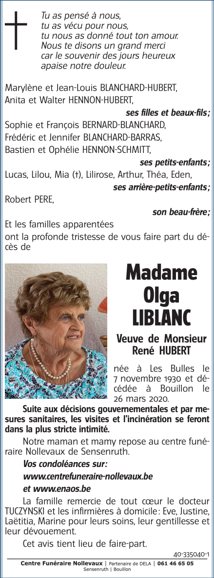 Overleden te Bouillon (6830) op donderdag 26 maart 2020 op 89-jarige leeftijd