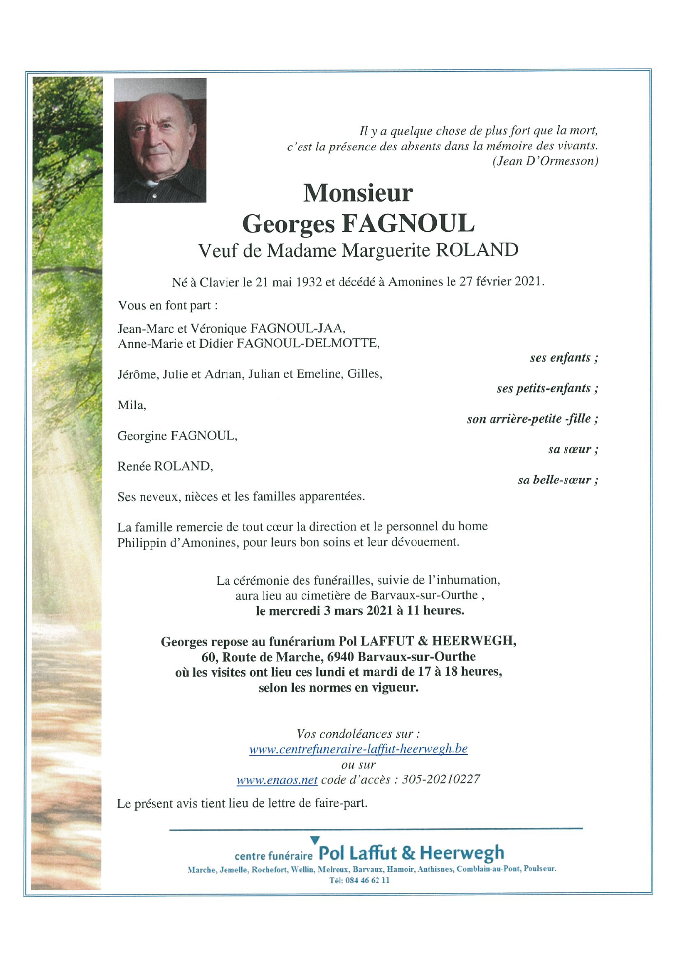 Décédé à Amonines (6997) le samedi 27 février 2021 à l'âge de 88 ans