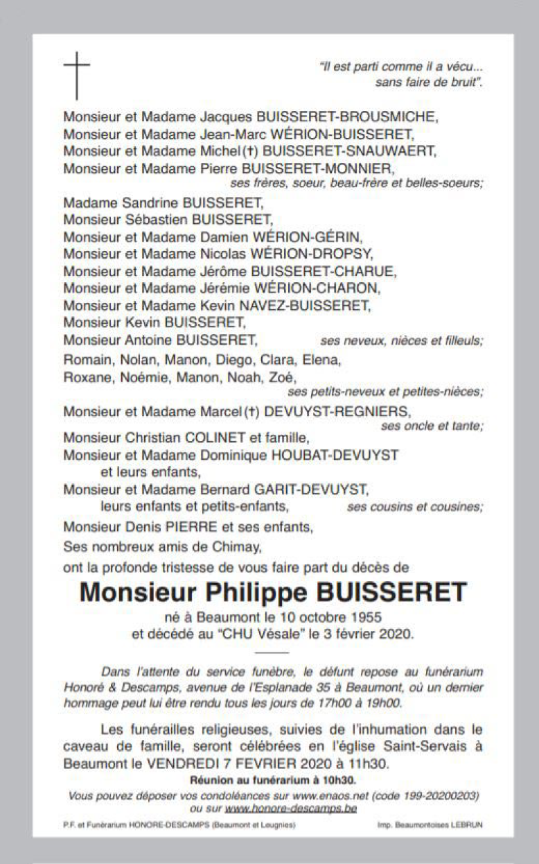 Décédé à Montigny-le-Tilleul (6110) le lundi 3 février 2020 à l'âge de 64 ans
