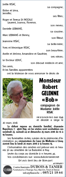 Overleden te Liège (4000) op dinsdag 20 maart 2018 op 72-jarige leeftijd