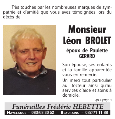 Fallecido en Dinant (5500) el martes, 27 de marzo de 2018 a la edad de 81 años