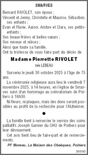 Fallecida en Poitiers (86000, Francia) el jueves, 30 de octubre de 2025 a la edad de 75 años