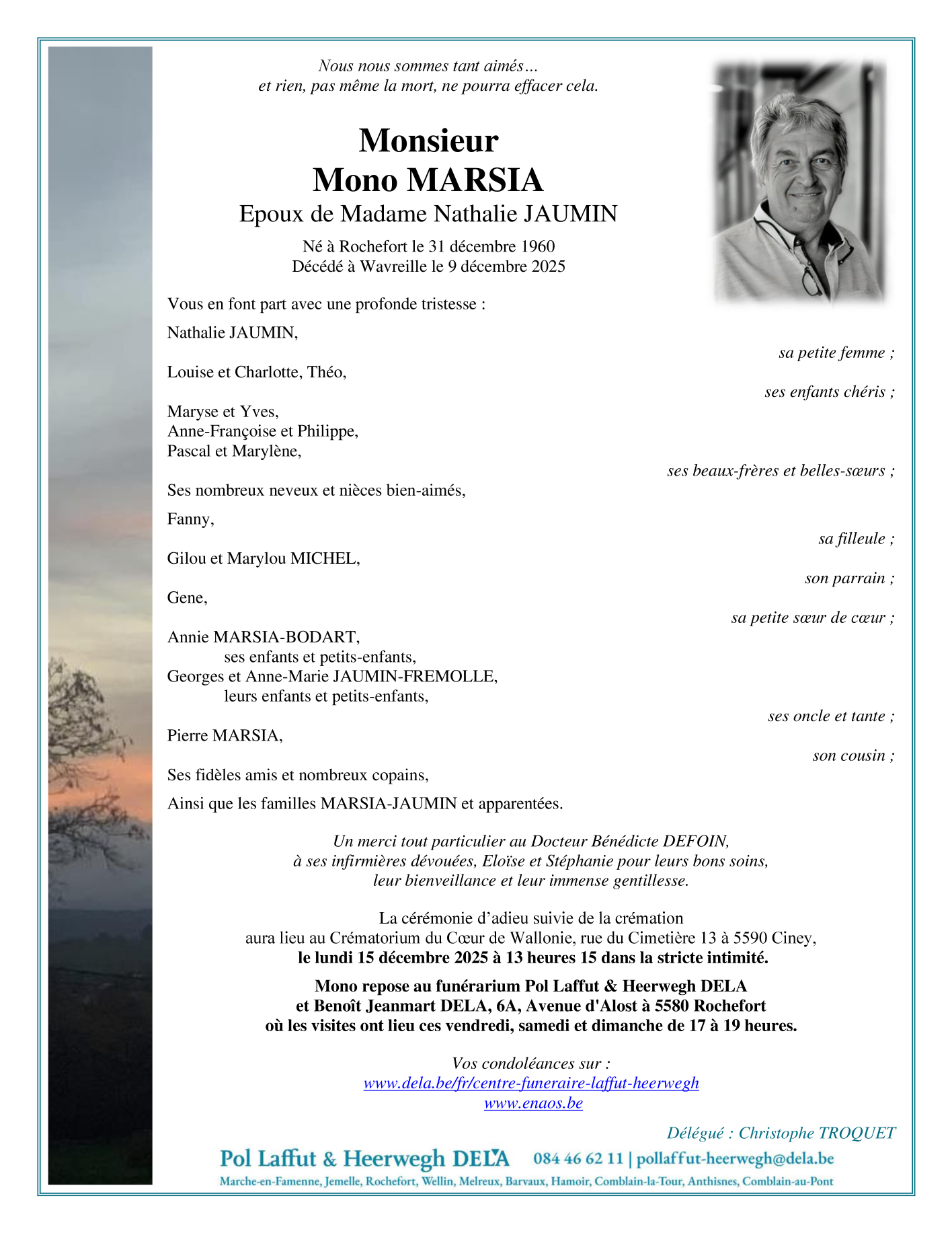 Overleden te Wavreille (5580) op dinsdag 9 december 2025 op 64-jarige leeftijd