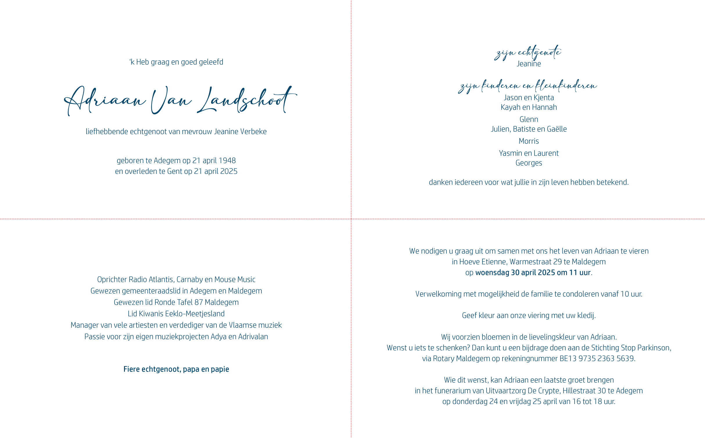 Décédé à Gent (9000) le lundi 21 avril 2025 à l'âge de 77 ans