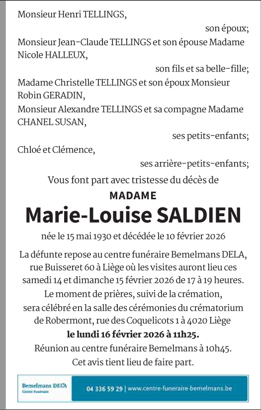 Overleden te Liège (4020) op dinsdag 10 februari 2026 op 95-jarige leeftijd
