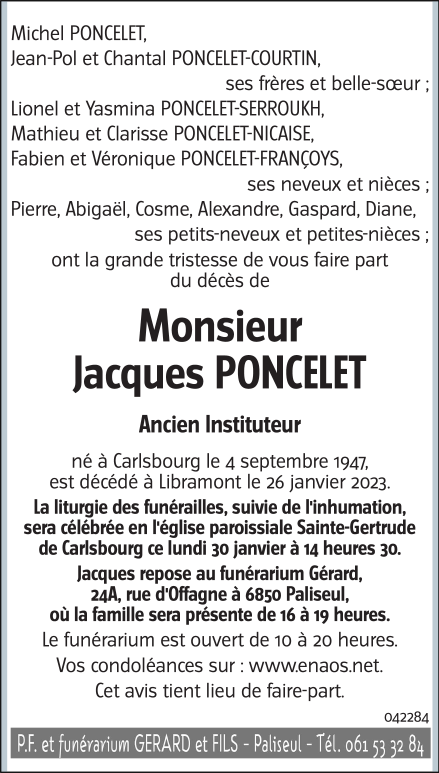 Décédé à Libramont (6800) le jeudi 26 janvier 2023 à l'âge de 75 ans