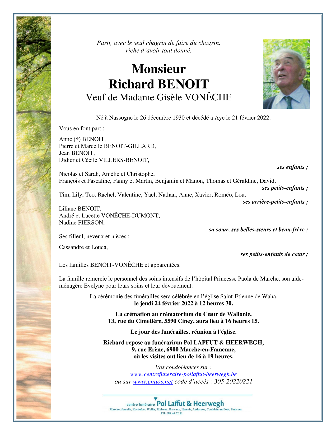 Born in Nassogne (6950) on 26 December 1930