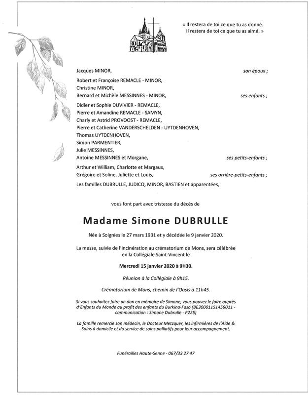 Overleden te Soignies (7060) op donderdag 9 januari 2020 op 88-jarige leeftijd