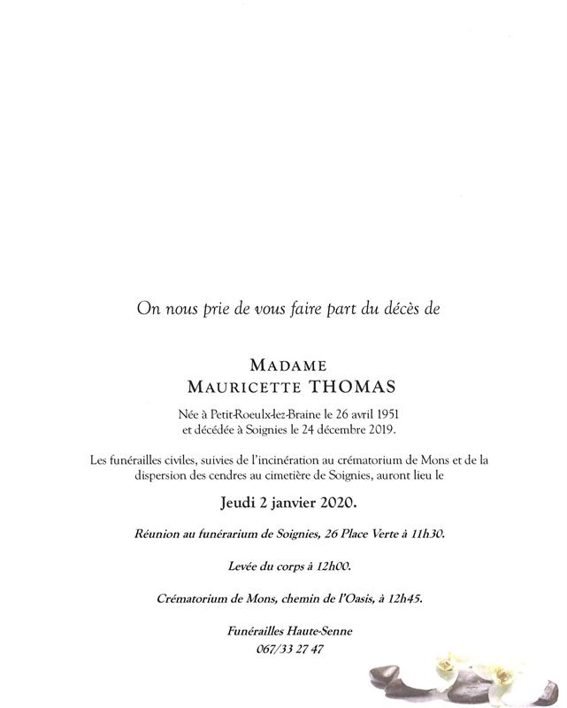 Décédée à Soignies (7060) le mardi 24 décembre 2019 à l'âge de 68 ans