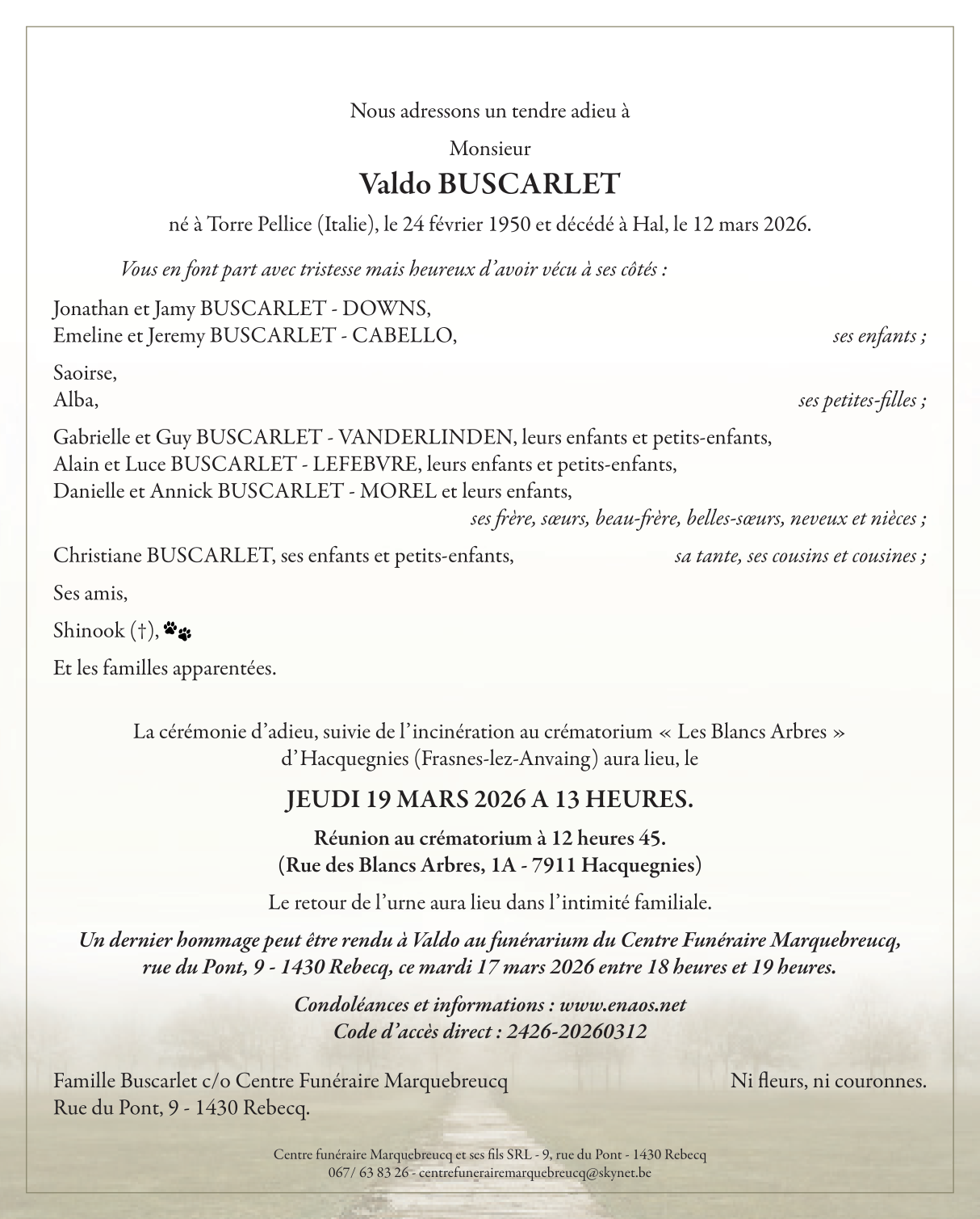 Décédé à Halle (1500) le jeudi 12 mars 2026 à l'âge de 76 ans