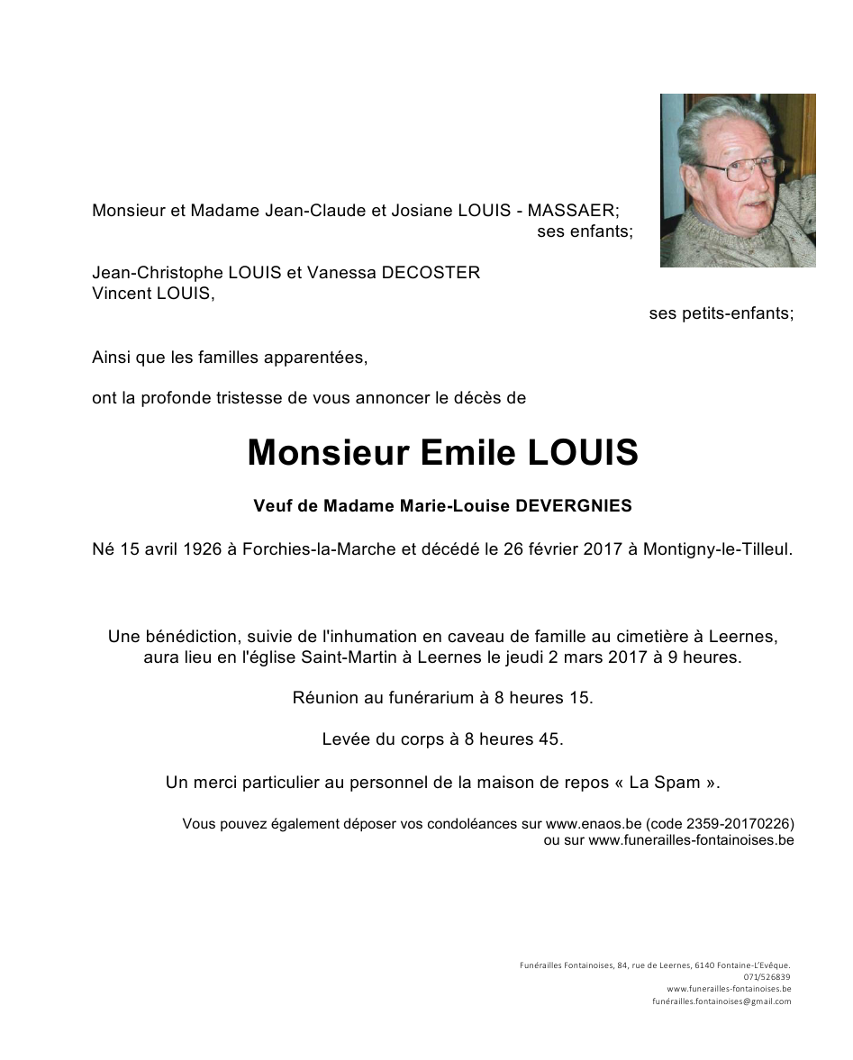 Fallecido en Montigny-le-Tilleul (6110) el domingo, 26 de febrero de 2017 a la edad de 90 años