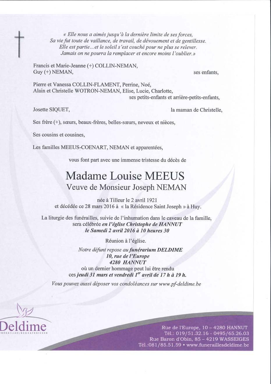 Overleden te Huy (4500) op maandag 28 maart 2016 op 94-jarige leeftijd