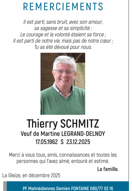 Décédé à Malmedy (4960) le mardi 23 décembre 2025 à l'âge de 63 ans