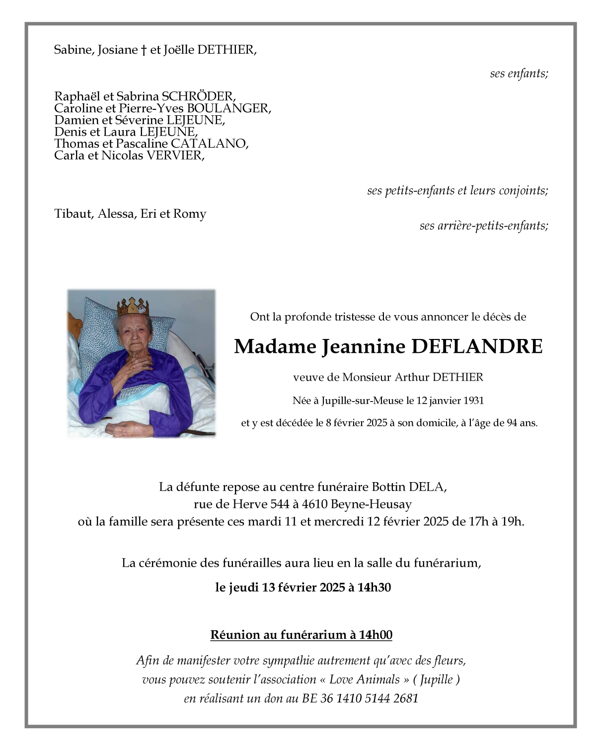 Overleden te Liège (4020) op zaterdag 8 februari 2025 op 94-jarige leeftijd