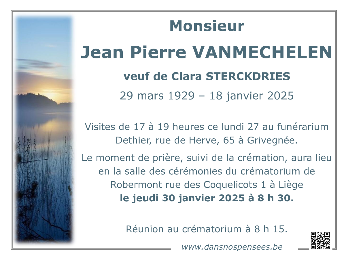 Décédé à Liège (4000) le samedi 18 janvier 2025 à l'âge de 95 ans