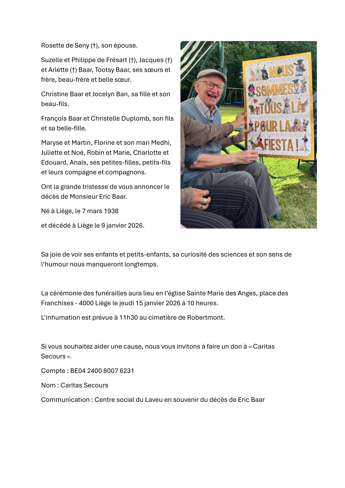 Overleden te Liège (4000) op maandag 12 januari 2026 op 87-jarige leeftijd