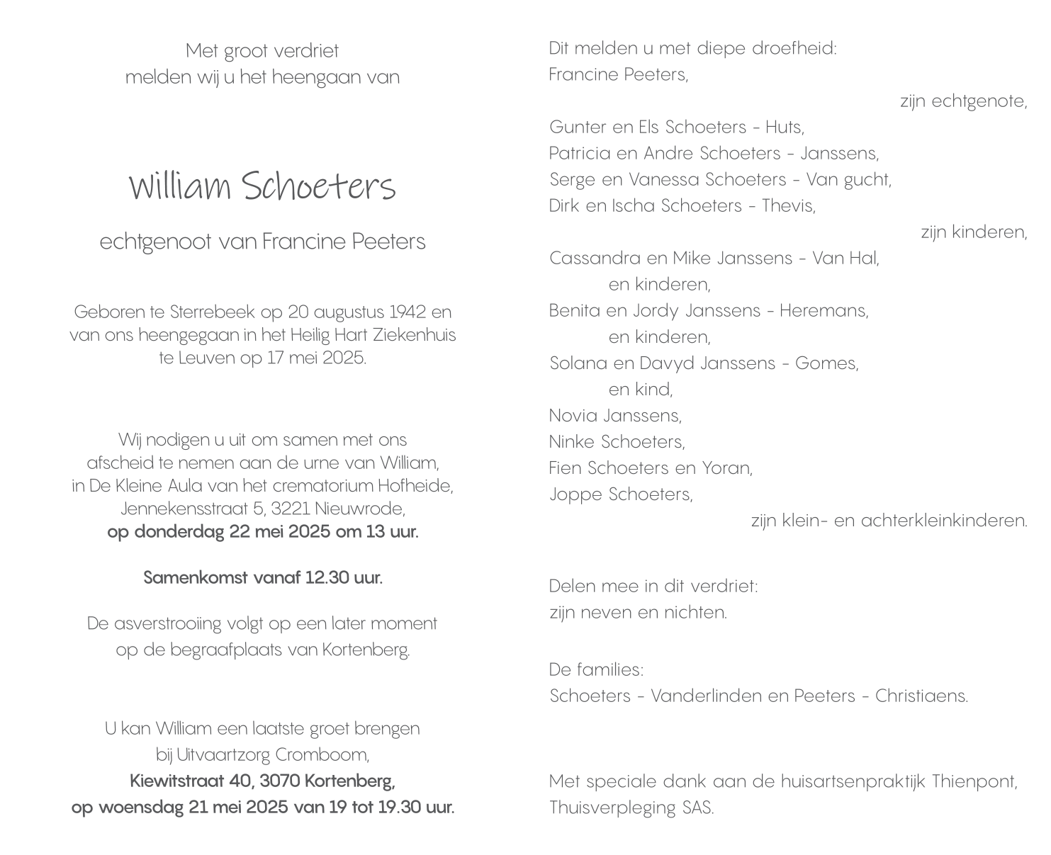 Fallecido en Leuven (3000) el sábado, 17 de mayo de 2025 a la edad de 82 años