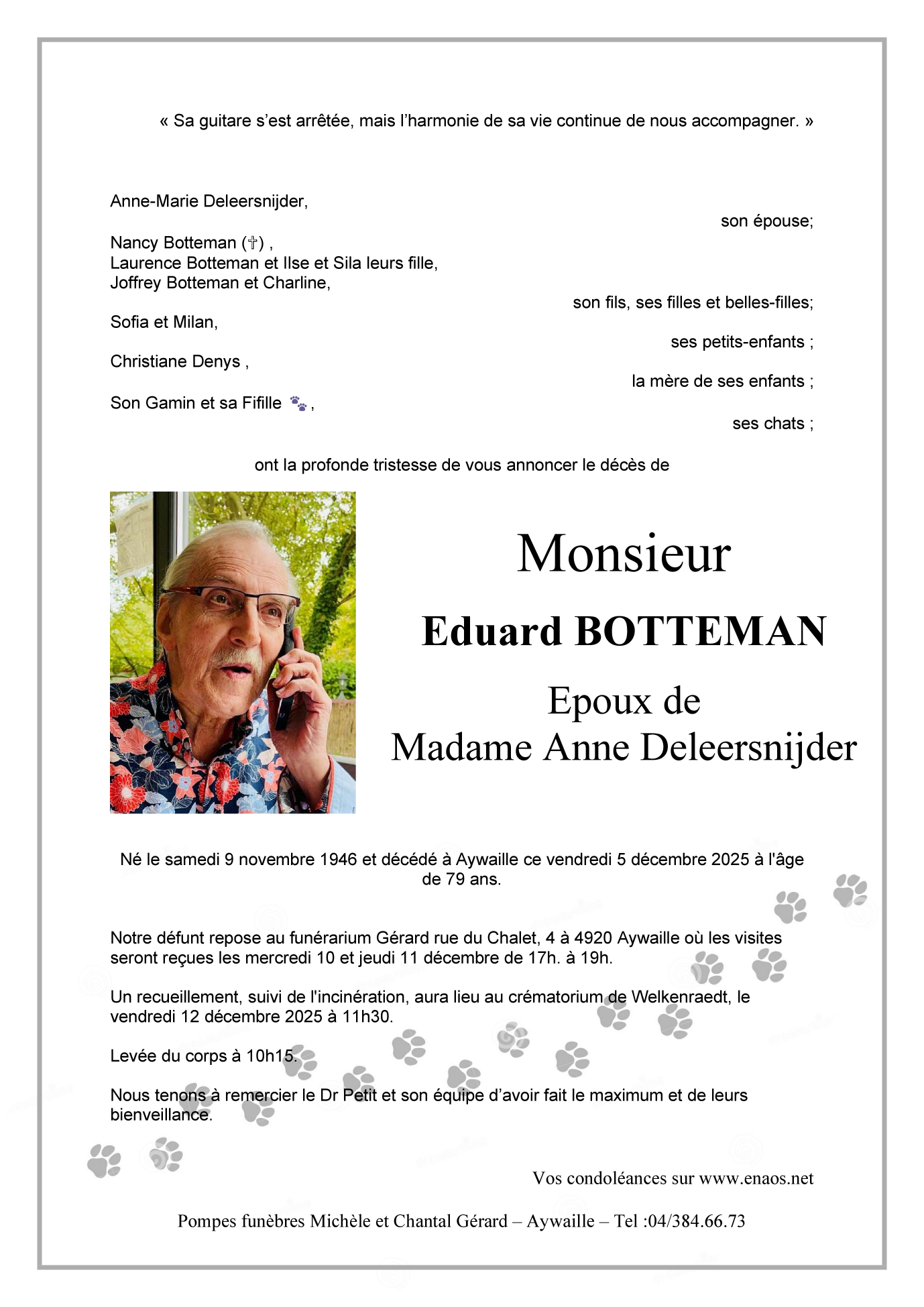 Décédé à Aywaille (4920) le vendredi 5 décembre 2025 à l'âge de 79 ans