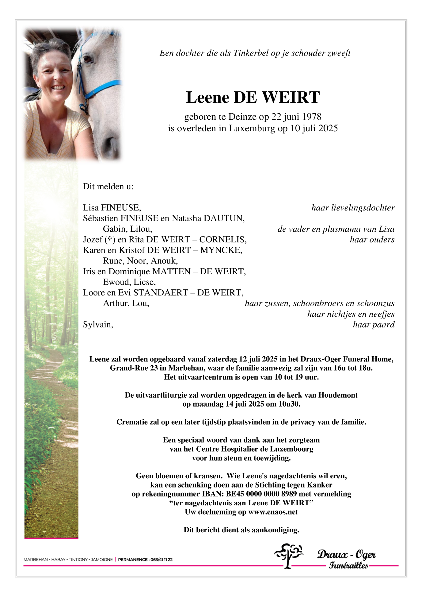Décédée à Luxembourg/Barble  (1210, Luxembourg) le jeudi 10 juillet 2025 à l'âge de 47 ans