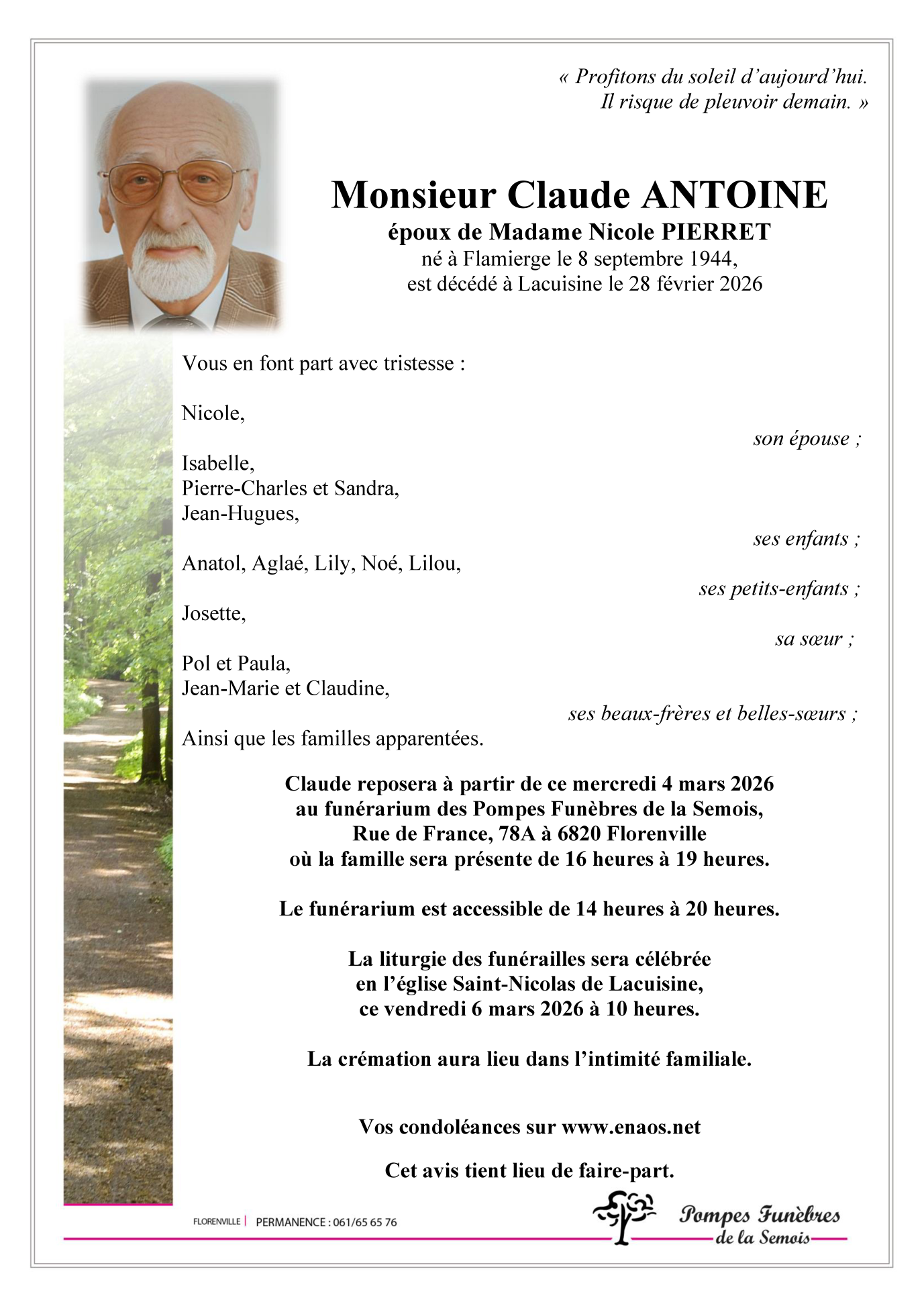 Overleden te Lacuisine (6821) op zaterdag 28 februari 2026 op 81-jarige leeftijd
