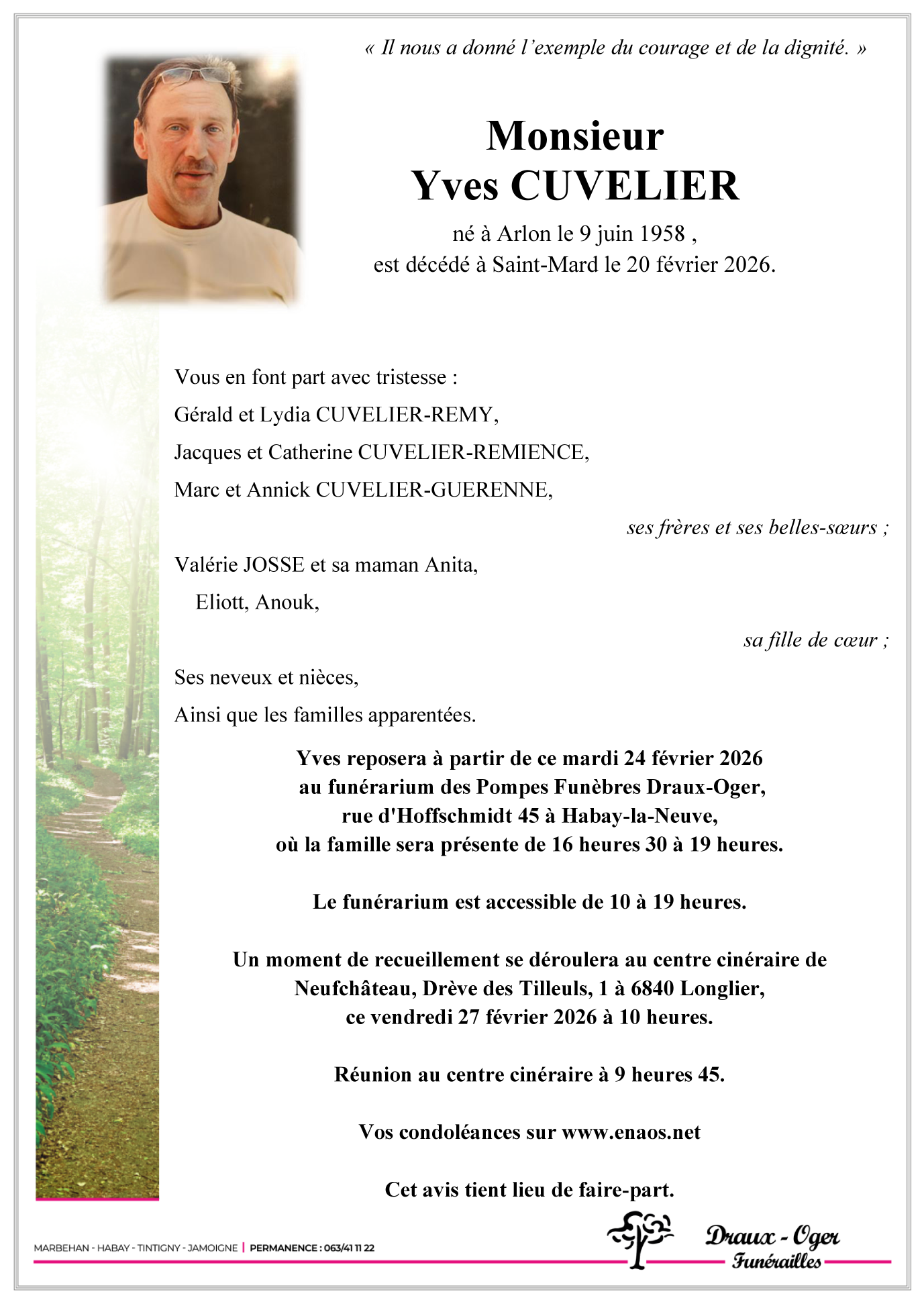Décédé à Saint-Mard (6762) le vendredi 20 février 2026 à l'âge de 67 ans