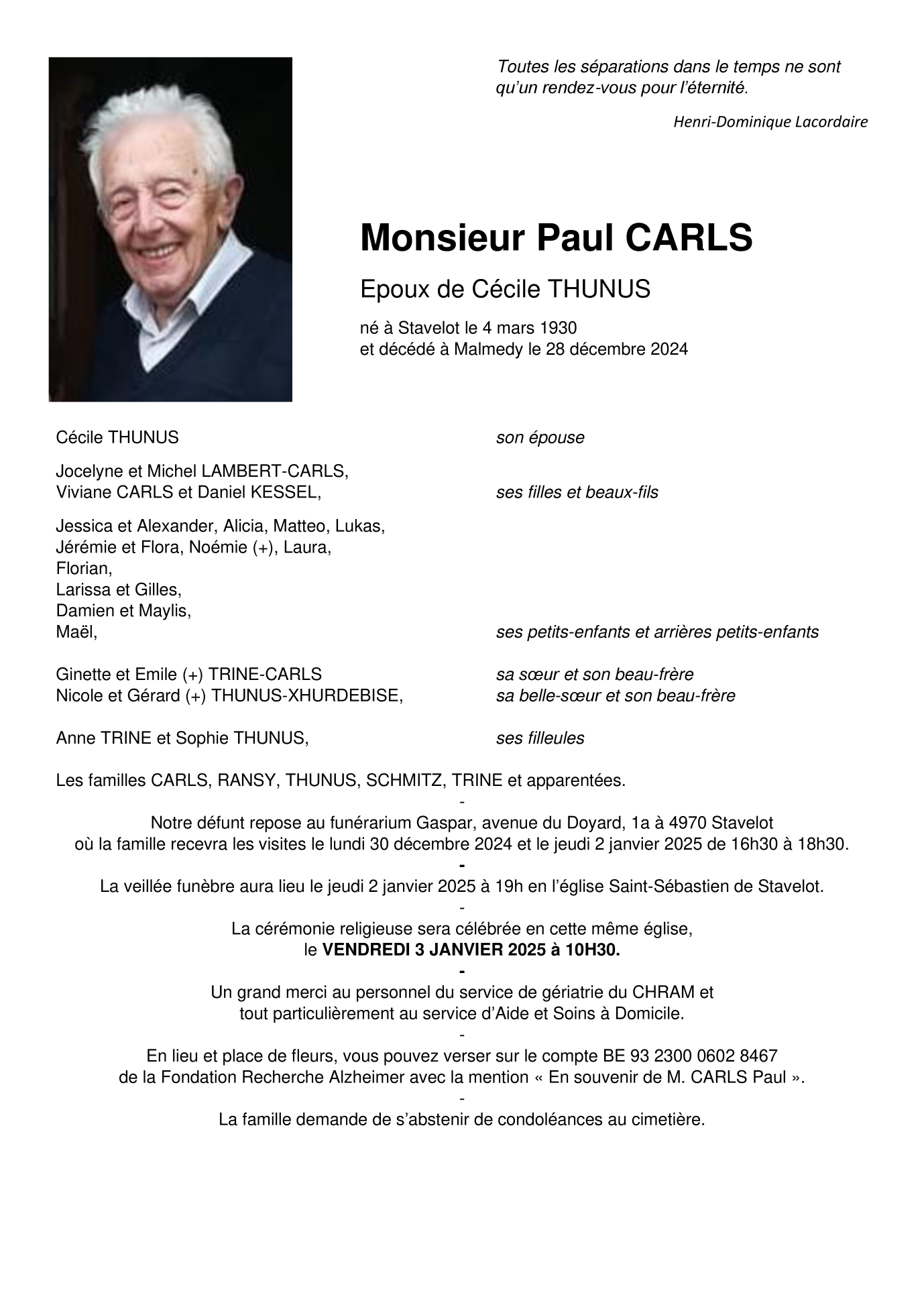 Fallecido en Malmedy (4960) el sábado, 28 de diciembre de 2024 a la edad de 94 años