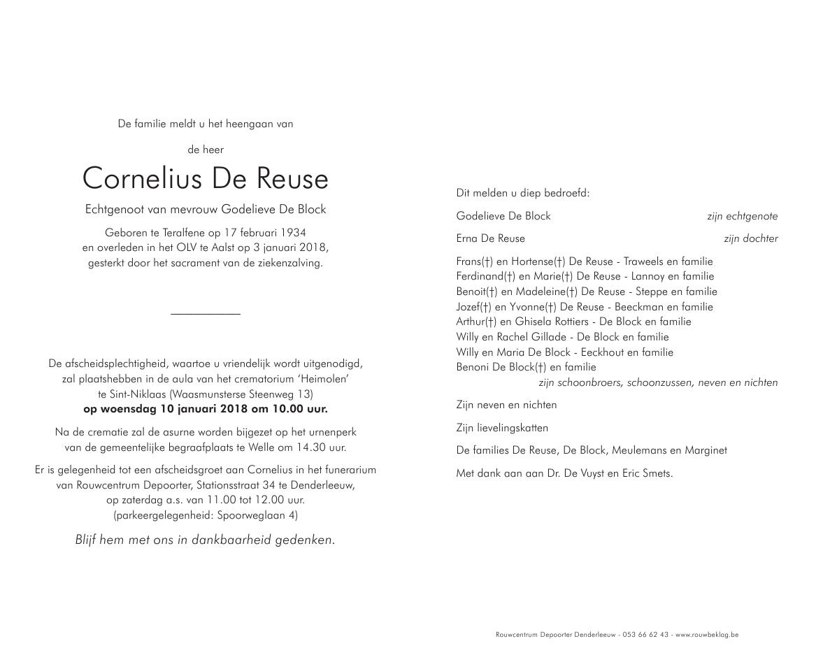 Décédé à Aalst (9300) le mercredi 3 janvier 2018 à l'âge de 83 ans