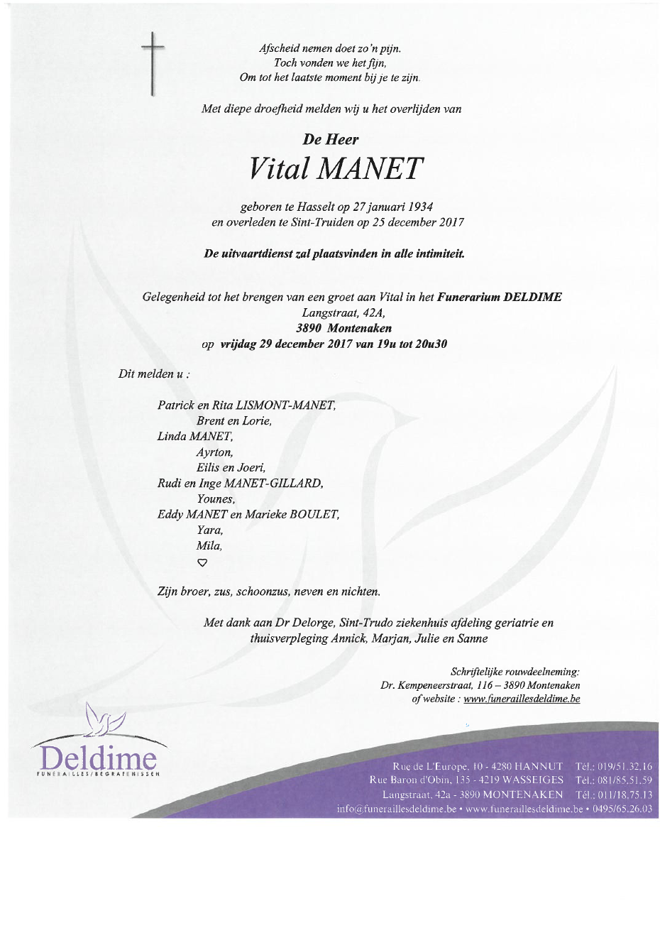 Overleden te Sint-Truiden (3800) op maandag 25 december 2017 op 83-jarige leeftijd