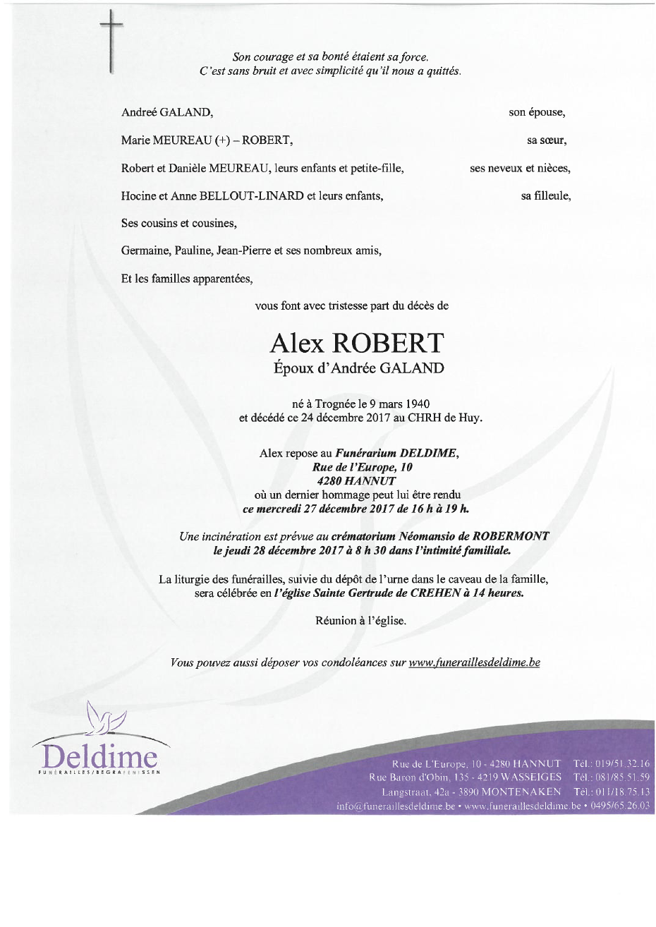 Died in Huy (4500) on 24 December 2017 at the age of 77 years