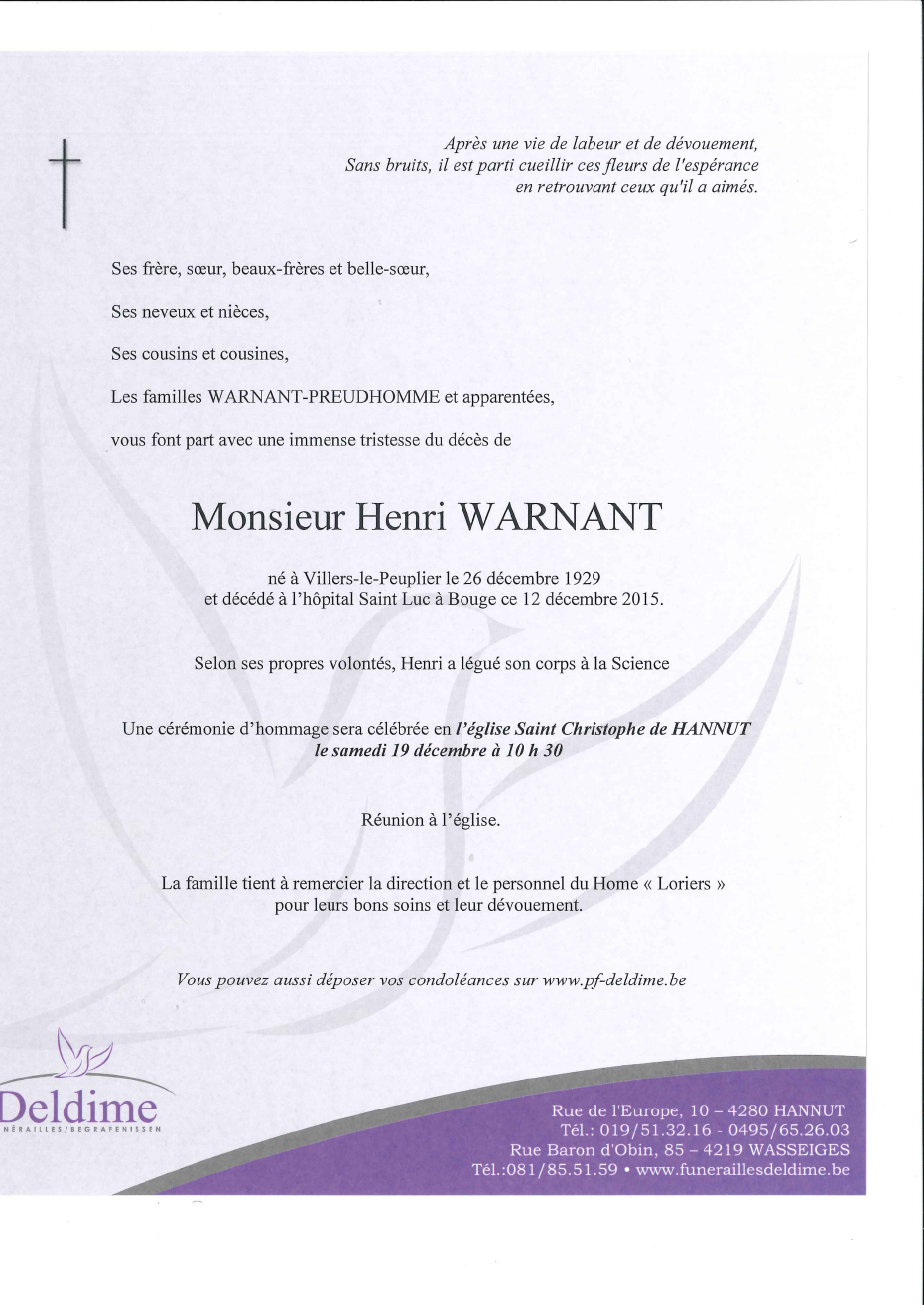 Décédé à Namur (5000) le samedi 12 décembre 2015 à l'âge de 85 ans