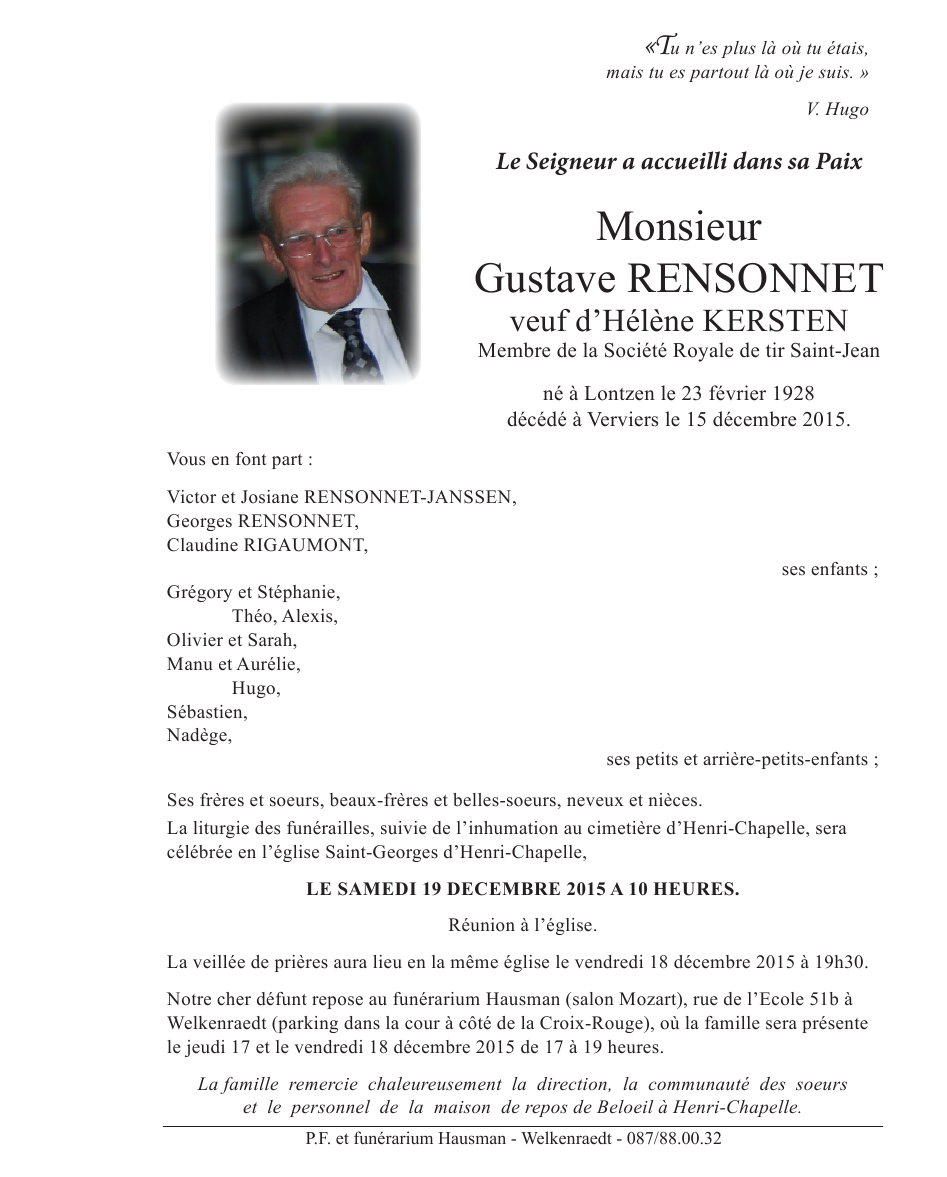 Fallecido en Verviers (4800) el martes, 15 de diciembre de 2015 a la edad de 87 años