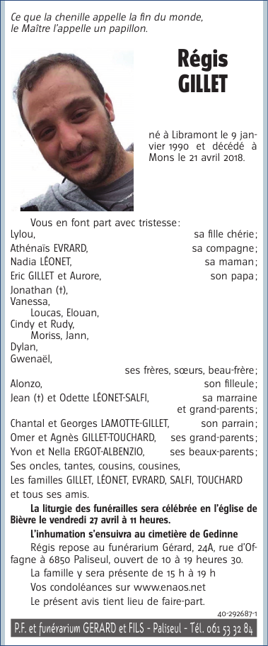 Décédé à Mons (7000) le lundi 23 avril 2018 à l'âge de 28 ans