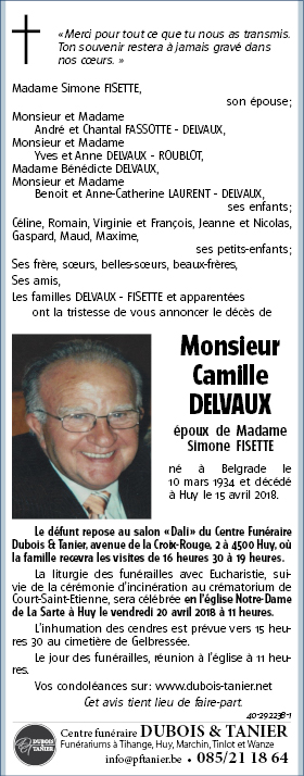 Fallecido en Huy (4500) el domingo, 15 de abril de 2018 a la edad de 84 años