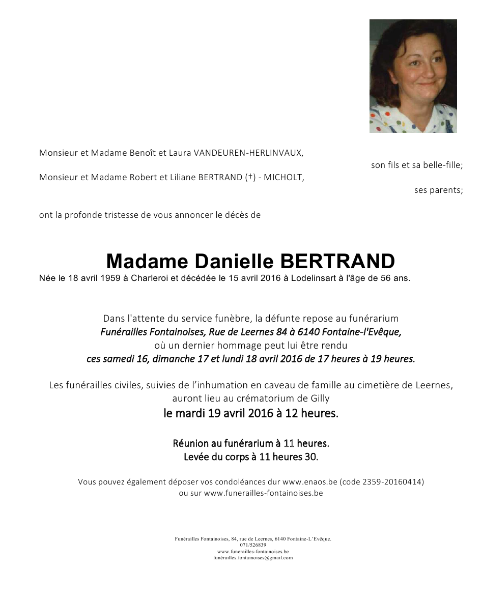 Overleden te Lodelinsart (6042) op vrijdag 15 april 2016 op 56-jarige leeftijd