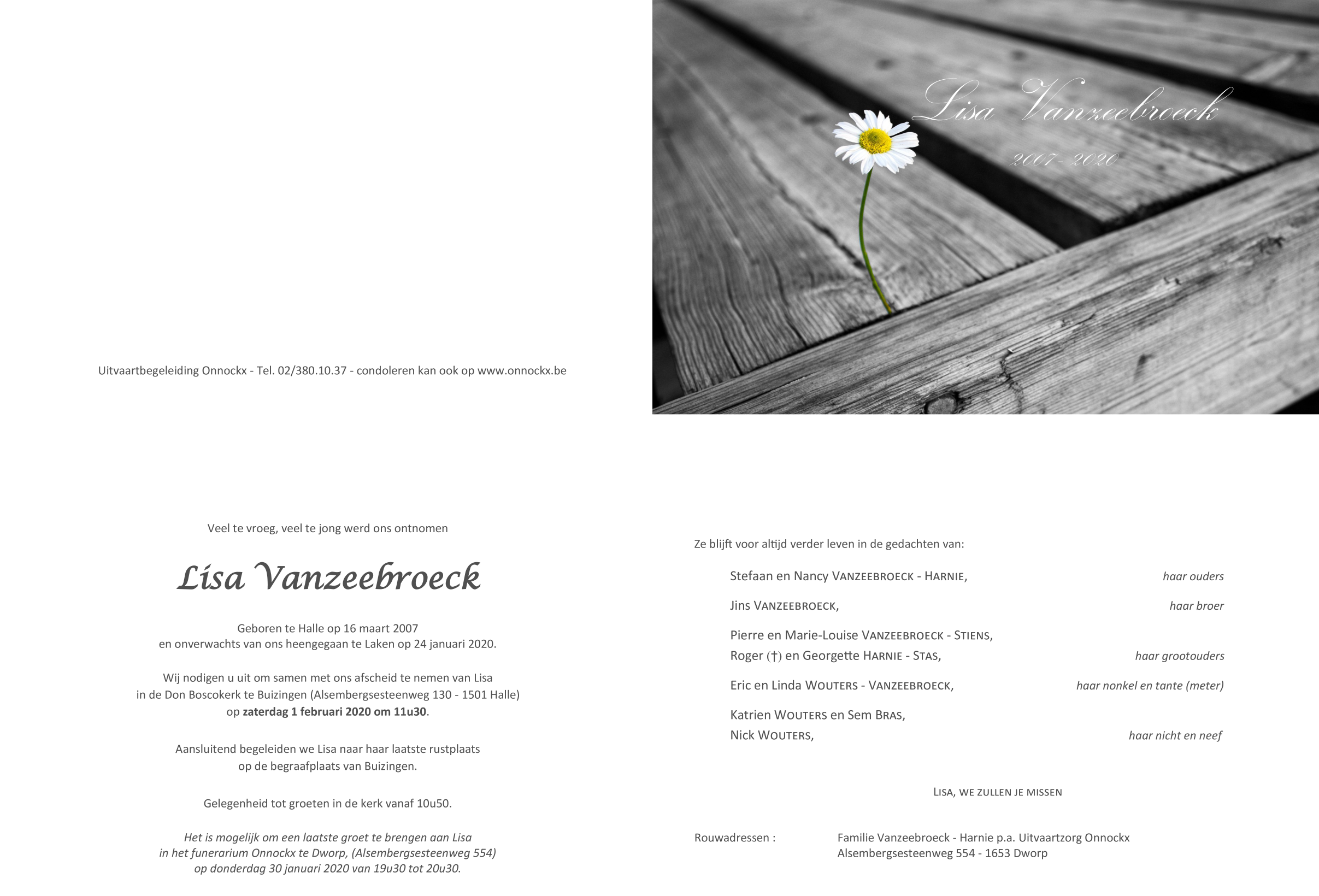 Overleden te Brussel (Laken) (1020) op vrijdag 24 januari 2020 op 12-jarige leeftijd
