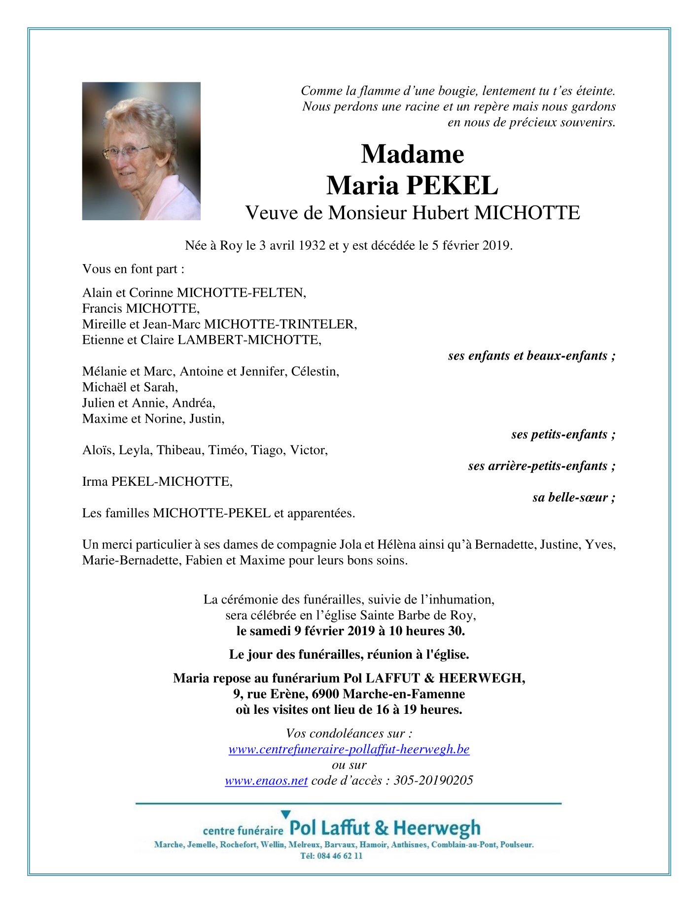 Viuda de Monsieur Hubert MICHOTTE