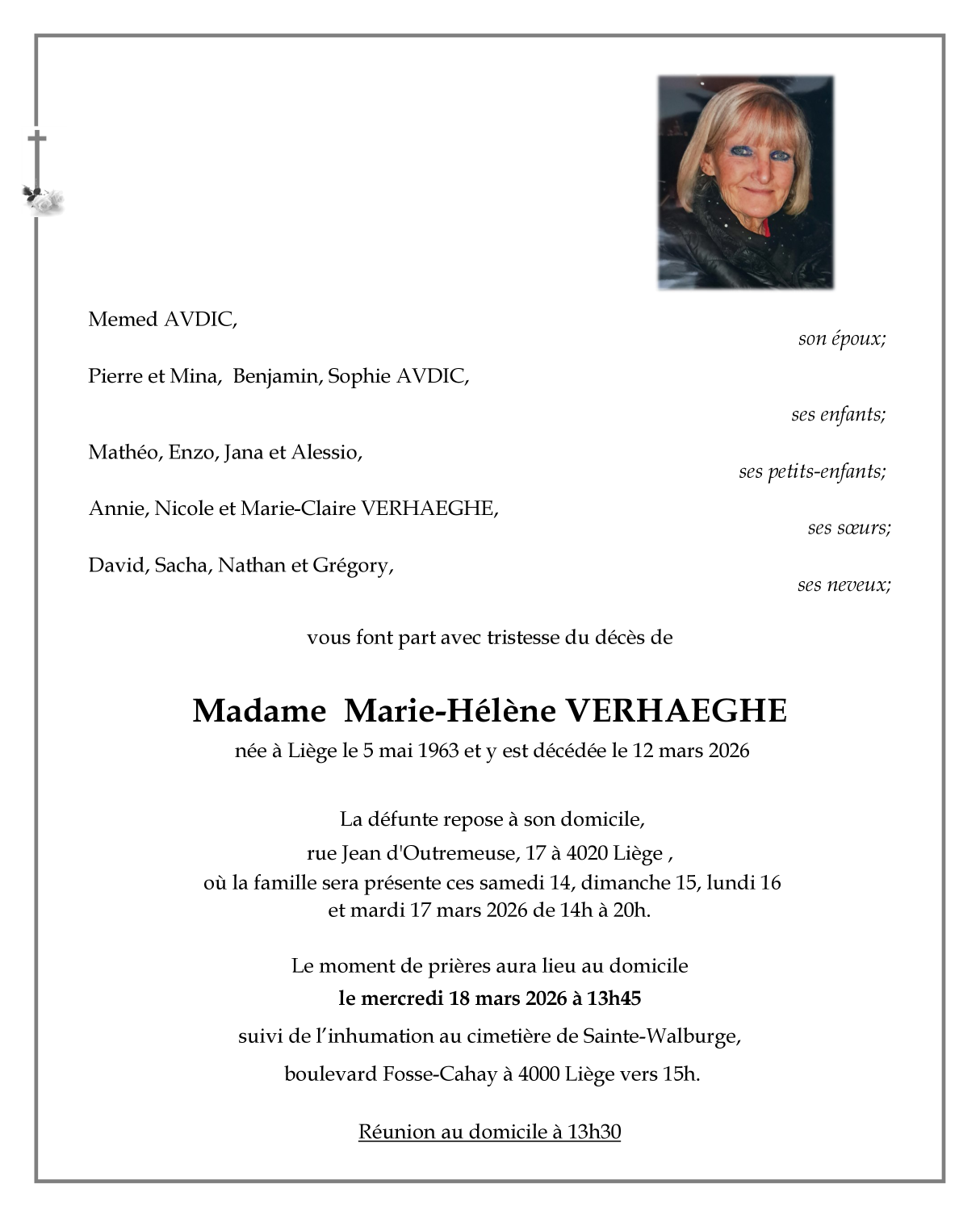 Died in Liège (4000) on 12 March 2026 at the age of 62 years
