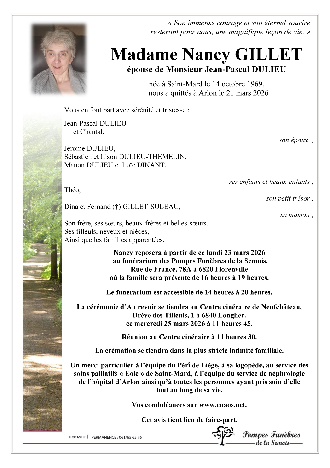 Fallecida en Arlon (6700) el sábado, 21 de marzo de 2026 a la edad de 56 años