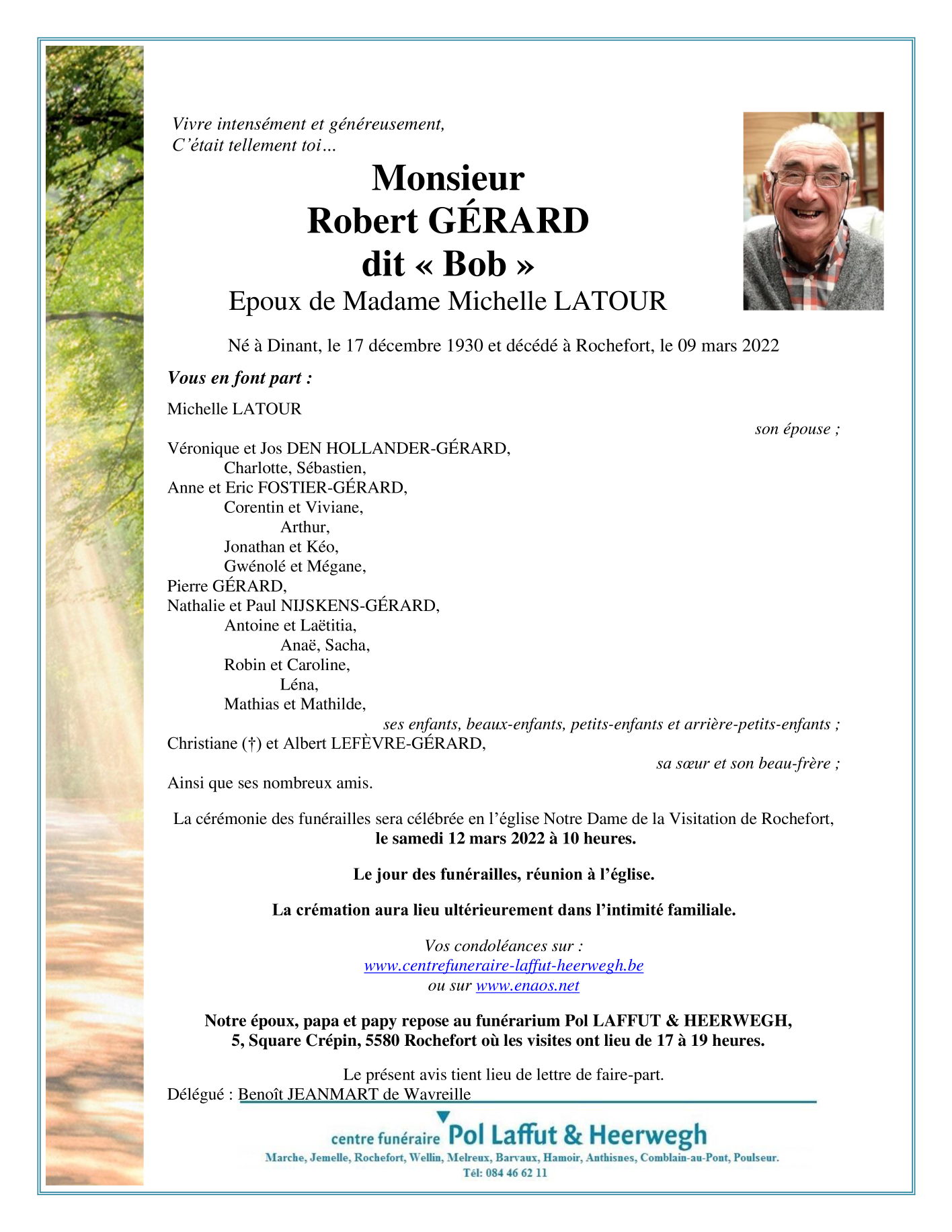 Overleden te Rochefort (5580) op woensdag 9 maart 2022 op 91-jarige leeftijd
