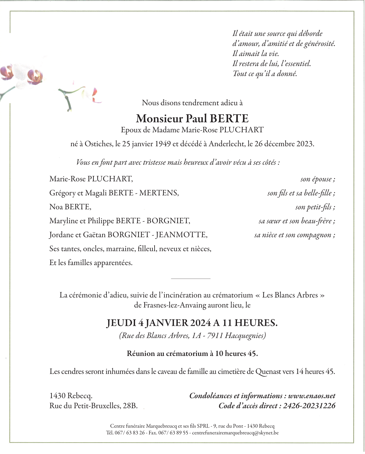 Fallecido en Anderlecht (1070) el martes, 26 de diciembre de 2023 a la edad de 74 años