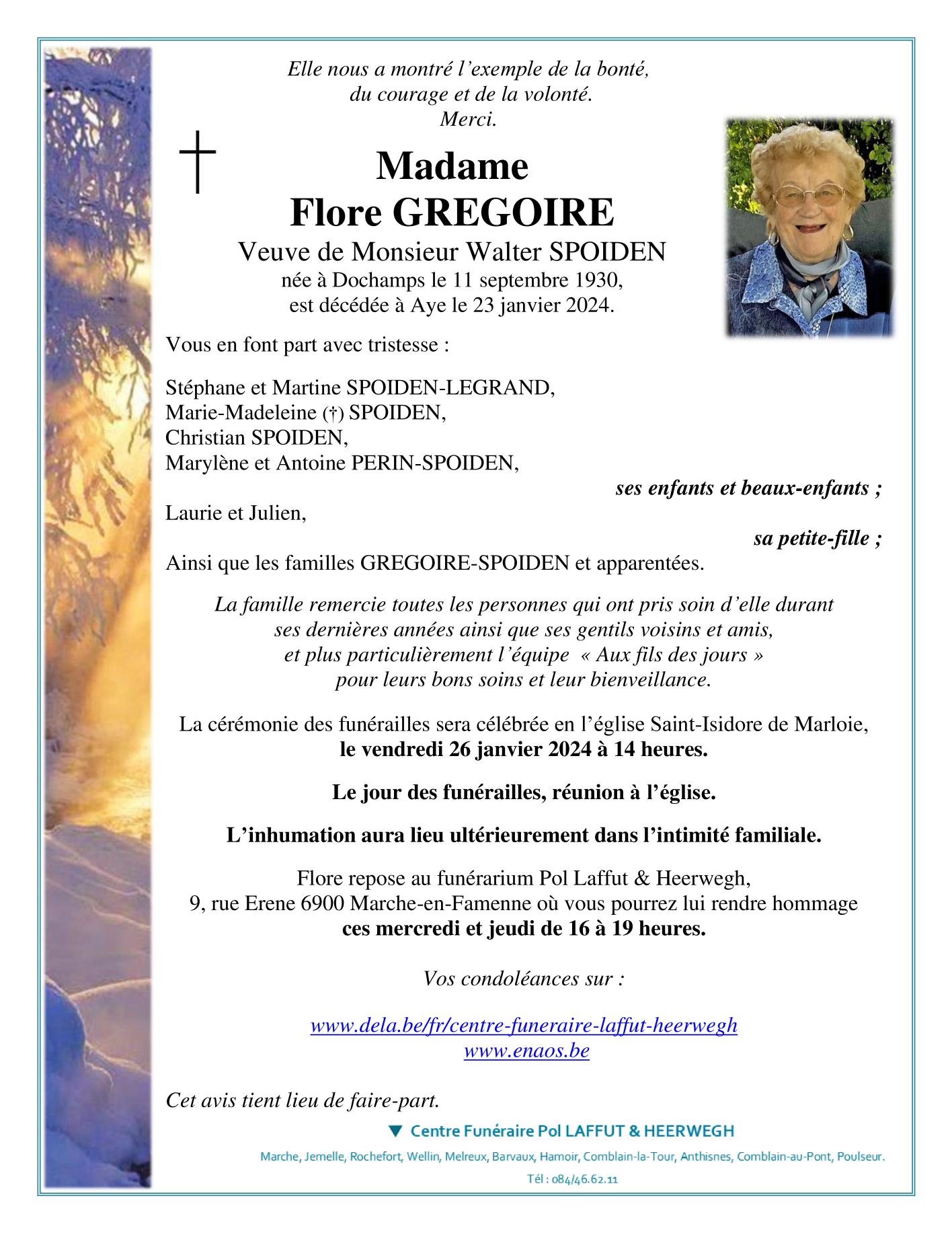 Overleden te Marche-en-Famenne (6900) op dinsdag 23 januari 2024 op 93-jarige leeftijd