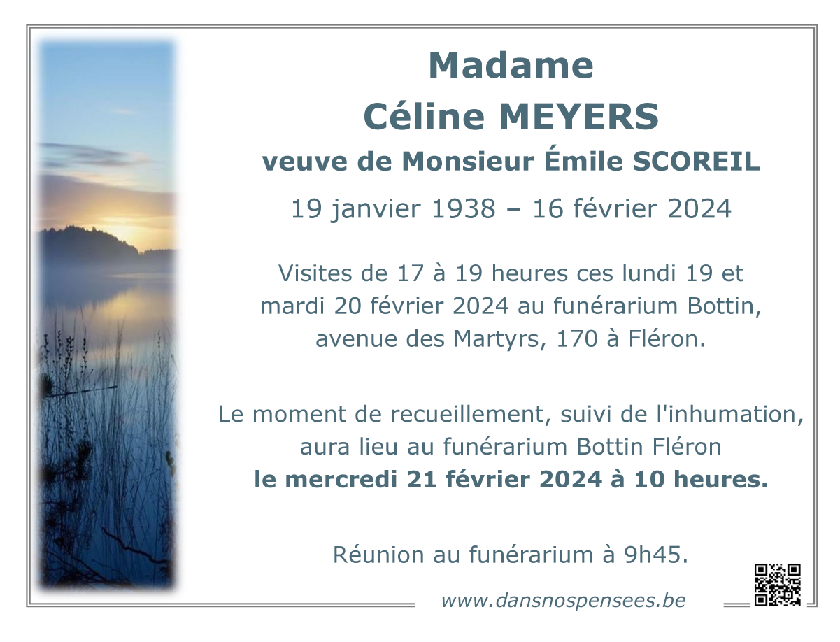 Décédée à Retinne (4621) le vendredi 16 février 2024 à l'âge de 86 ans