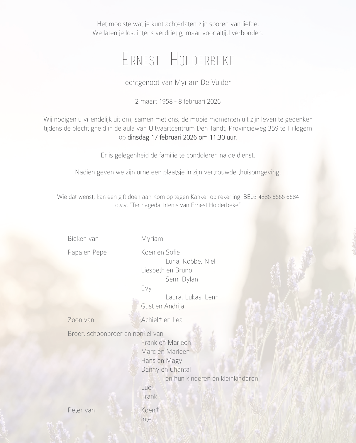 Overleden te Erpe-Mere (9420) op zondag 8 februari 2026 op 67-jarige leeftijd
