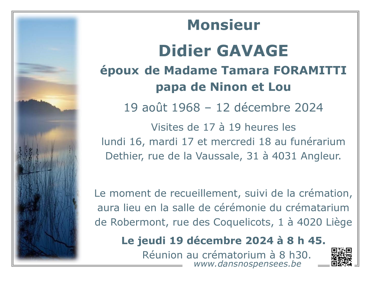 Décédé à Liège (4000) le jeudi 12 décembre 2024 à l'âge de 56 ans