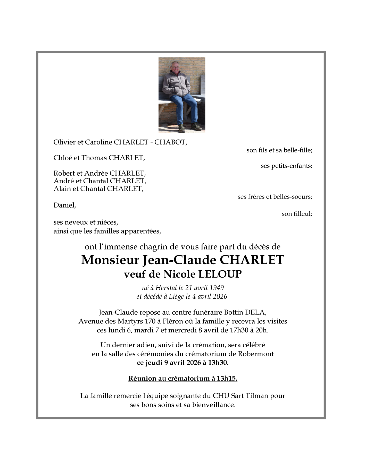 Died in Liège (4000) on 04 April 2026 at the age of 76 years