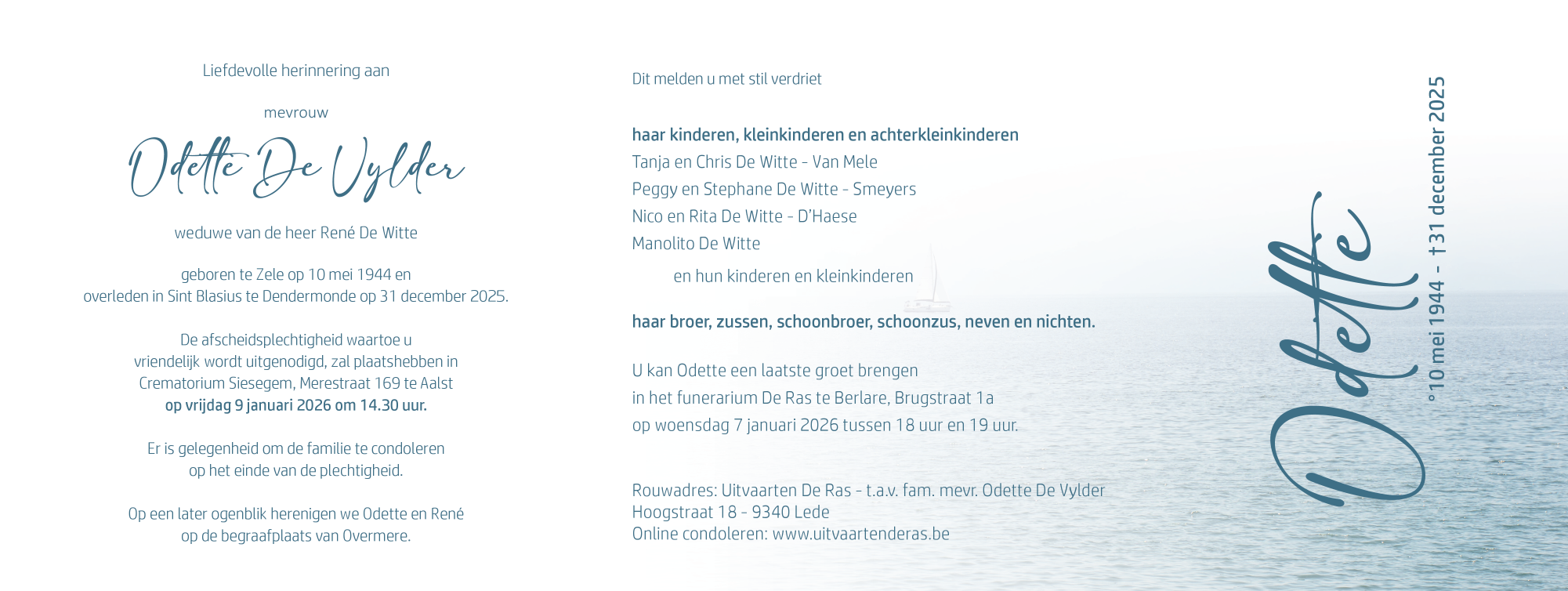 Décédée à Dendermonde (9200) le mercredi 31 décembre 2025 à l'âge de 81 ans