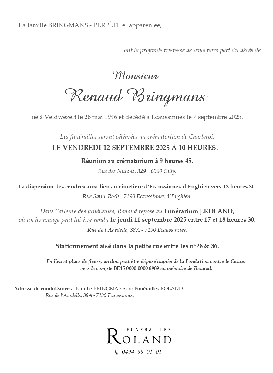 Overleden te Ecaussinnes (7190) op zondag 7 september 2025 op 79-jarige leeftijd